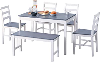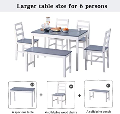 Dining Table Set of 4,M MUNCASO Kitchen Table and Chairs Set Include 1 Table+4 Chairs+1 Bench (Grey+White