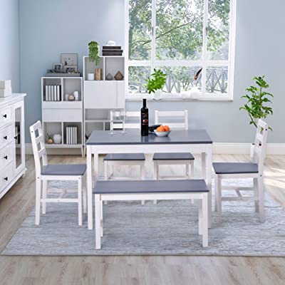 - 【Elegant & Classic Style 】- The 6 Pcs dining table set comes with smooth design and classic grey & white paintwork, it will bring a vibrant and fresh feel to your dining room..