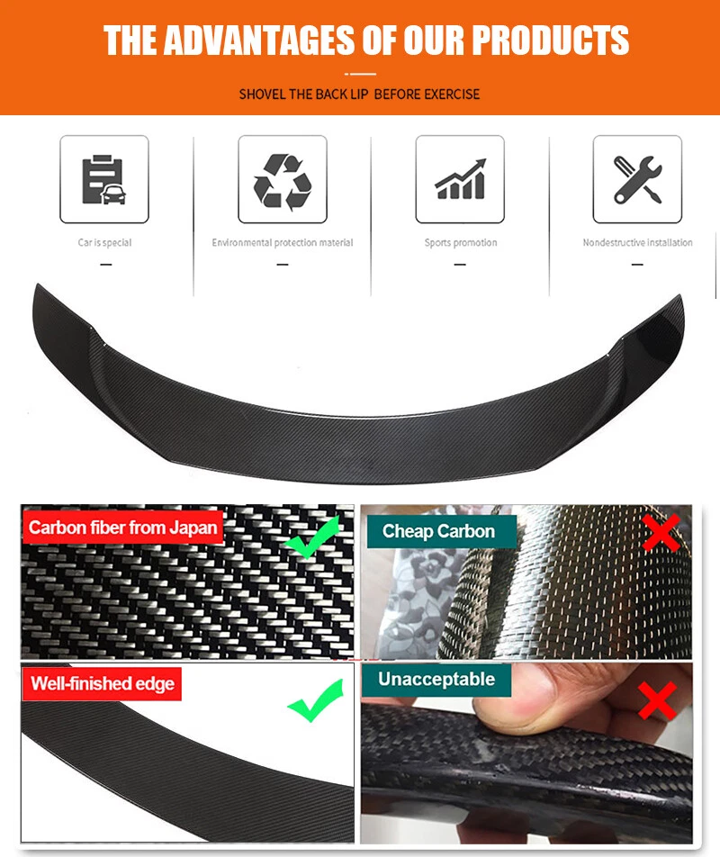 For Tesla Model Y 2020-2024 DRY CARBON FIBER Rear Trunk Spoiler Lip Boot Wing
