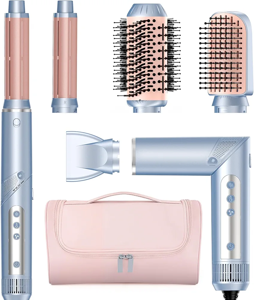 Hot Air Multi-Styler – 5 in 1 Professional Hair Wrap Styler Set with Air Curlers, Hair Dryer Brush, Straightener, Concentrator for Fast Drying Curling Straightening, Travel Case Included