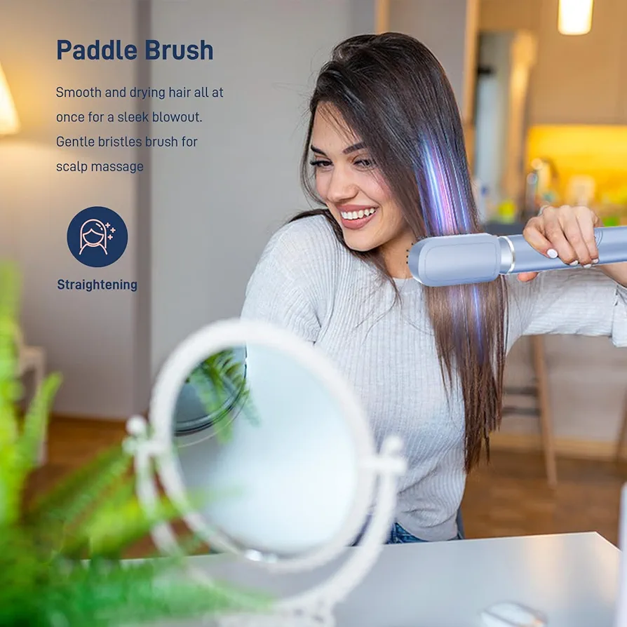 5 in 1 hot air styler emits 20 million negative ions during the hair drying air hair wrap process, flex hair style making unruly hair more manageable and smooth, giving it a natural shine and elasticity. This feature ensures that your hair remains soft, manageable, and easy to style at all times.