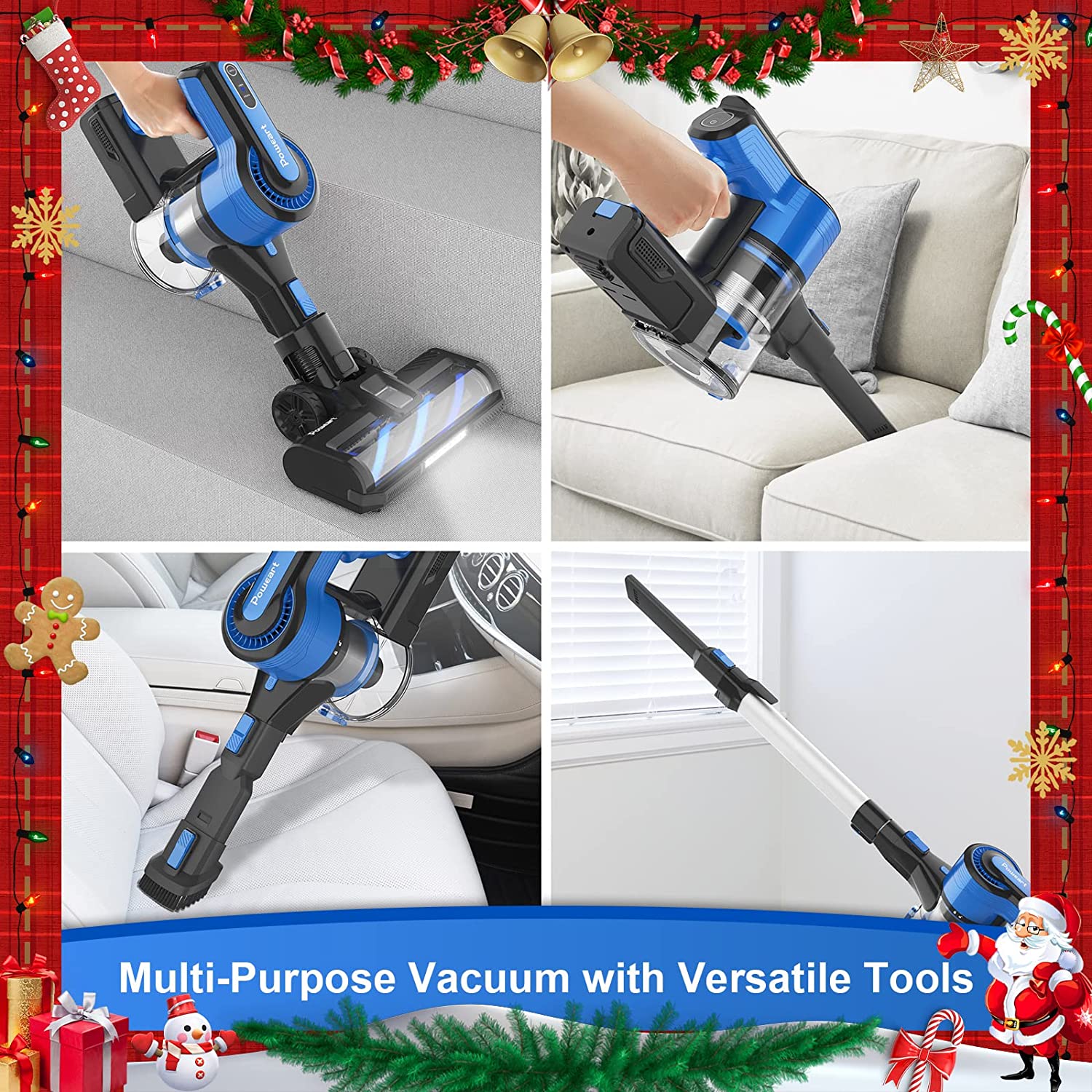 FABULETTA 24 Kpa Cordless Vacuum Cleaner – 6 in 1 Lightweight Stick Vacuum with Powerful Suction 250W Brushless Motor, for Pet Hair Carpet Hard Floor, Max 45 Min Runtime, Led Display, Blue