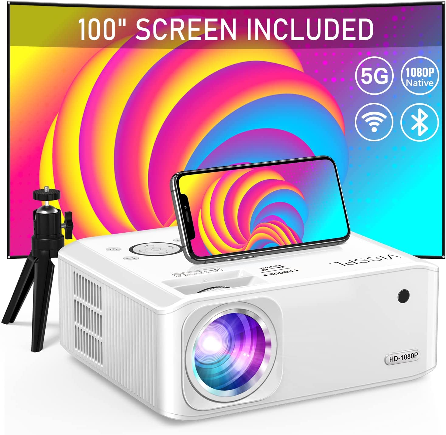 - 【Latest 5G+2.4G WiFi&5.1 Bluetooth&Advanced System】Say goodbye to clumsy and lag operation. VISSPL WiFi projector adopts the newest 5G+2.4G WiFi connectivity method and advanced system with powerful running memory, which can ensure a stable signal and fast transmission speed. Moreover, the Bluetooth 5.1 chip allows the projector to connect with an external speaker wirelessly. The built-in stereo dual speakers can already give you all the original audio fidelity with crystal clear sound quality.