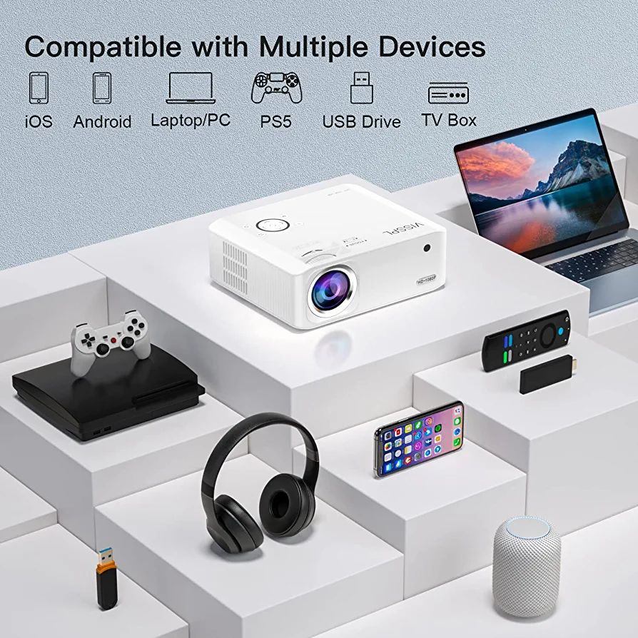- 【Multi-device Connection&Business Presentation】Please don’t worry if your device doesn’t have WiFi connection. Our projector has USB*2/HDMI*2/AV/Audio output port, which can be connected to Phone, Laptop, TV box, PS5, Switch, USB, ect. VISSPL projector can play office documents like PPT via USB or laptop. It can not only increase the entertainment of your life, but also bring convenience to your office.★Due to copyright of Apps, Netflix, Prime Video, Hulu, etc,. can only be played via TV Stick.★