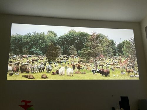 Myself and my family love the look of the projector, and the setup process was very easy. Even when projected onto my lumpy white wall, the 1080p 4k image is really crisp. A power cord, HDMI cable, remote, and even a microfiber cloth to wipe the lens are included in the packaging. The product comes with a 100" screen but I was too lazy to put it up. The remote's basic controls button and the gadget itself are straightforward to operate. The audio quality is likewise excellent, and the speakers on the device is more than adequate for filling the room. There are USB ports on the product where I could put in my USB flash drive and watch movies. I was also able to stream nearly anything from my iOS phone or Android tablet and project it on the wall thanks to WiFi connectivity. The focus knob is very easy to adjust, making focusing simple.