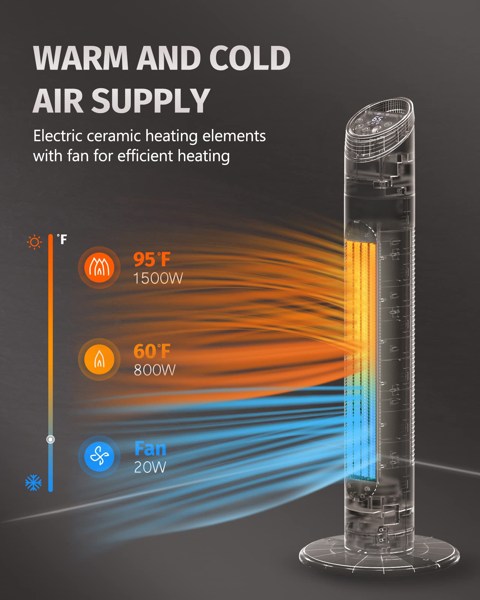 • 3.Auto Temperature Control from 60-90℉,Heater or fan mode