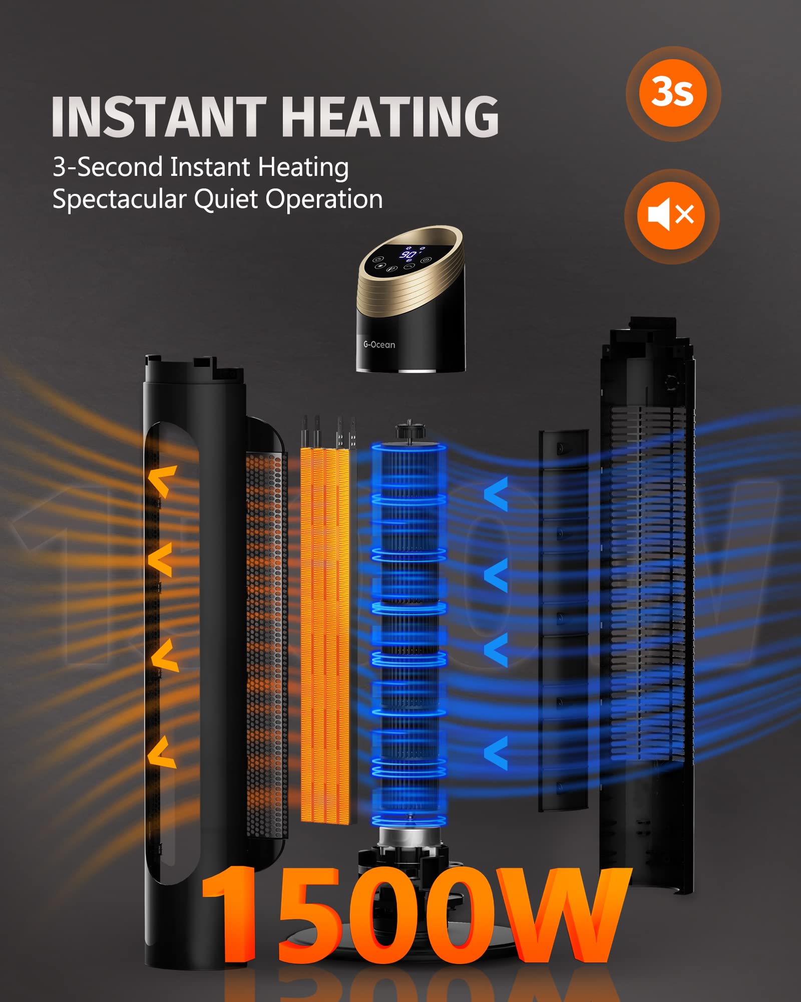 【G-OCEAN SUNRISE HB】STAY WARM & SAVE YOUR BILLS – Ideal for large rooms, If you are looking for a fast heating heater for living room/bedroom/office, G-Ocean energy-efficient large space heater will bring you instant and widespread warmth than mini space heaters. This ceramic space heater is designed with 1500W PTC heating components and a 70° oscillating setting, delivering warm air around the bedroom/living room/office quickly pushing air farther away evenly.